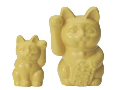 Y4243 釉猫 YOU-NEKO 黄色4号左手(高さ12cm)招き猫 常滑焼 スタイリッシュ 幸運 幸せの黄色い招き猫