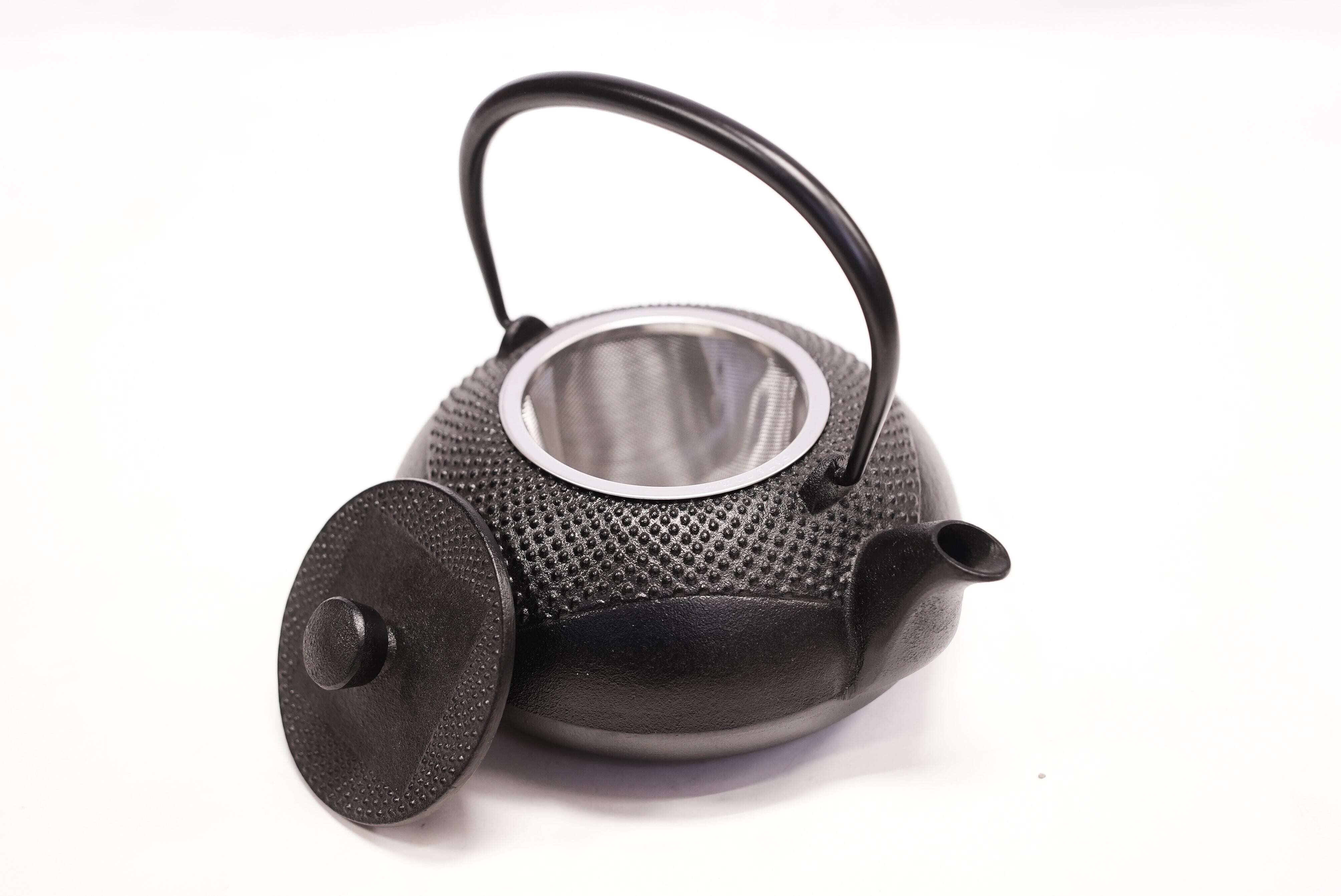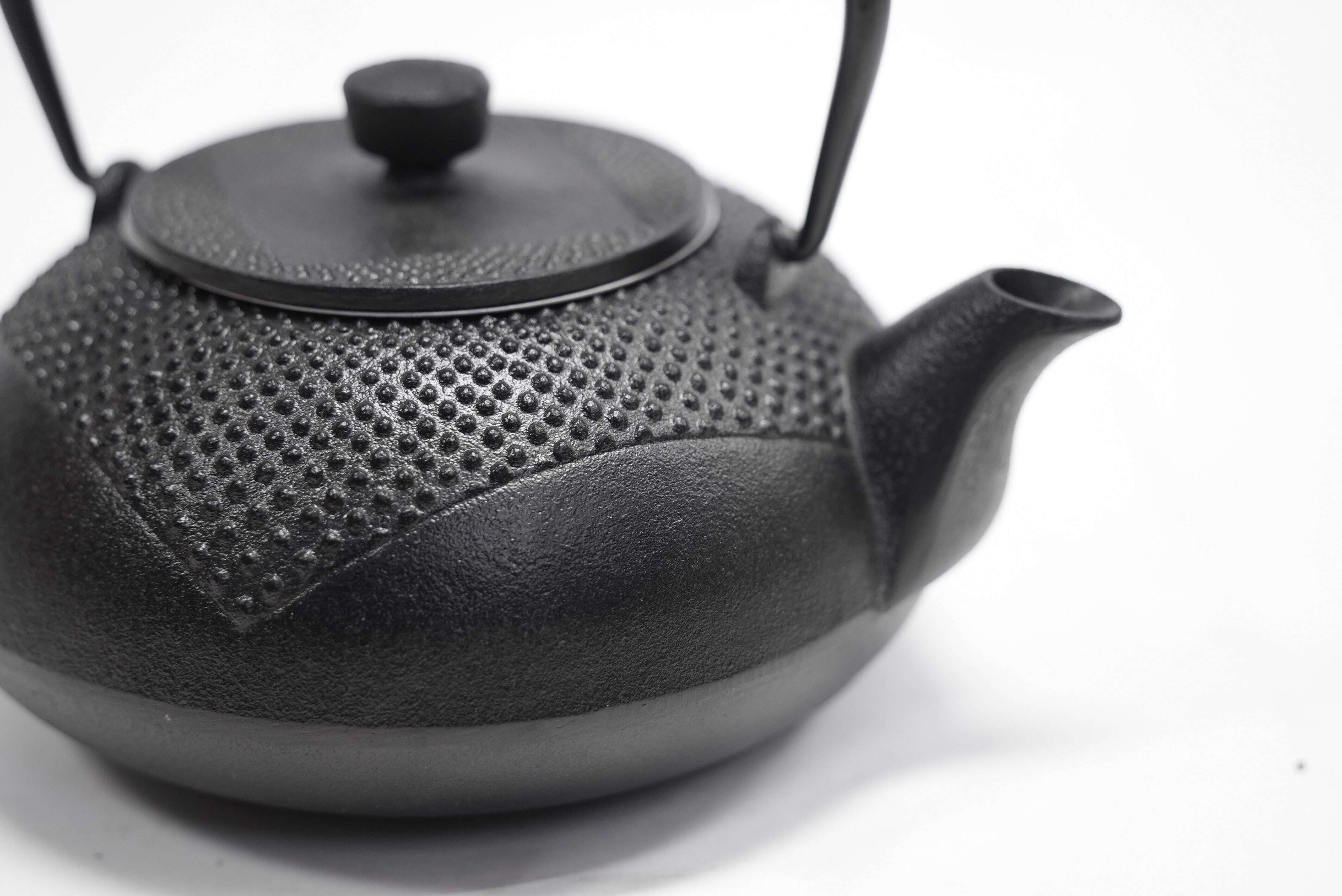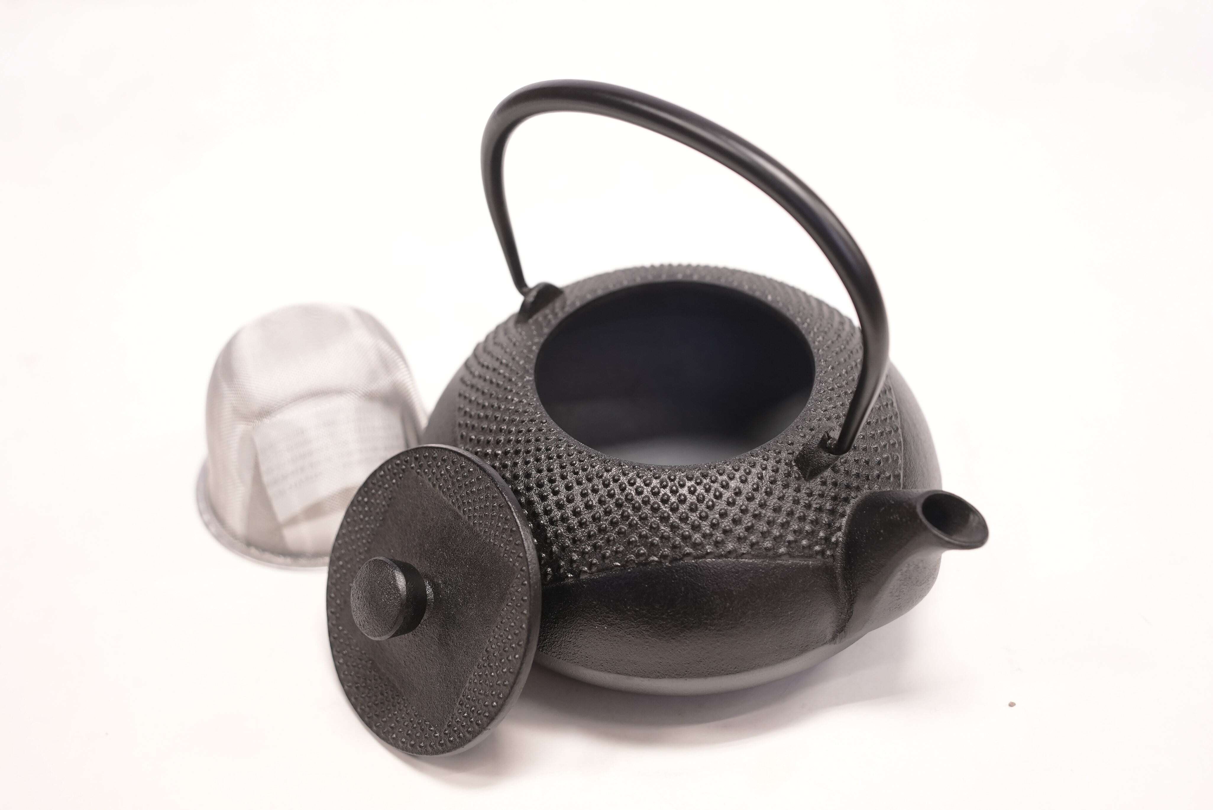 <仕様>ホーロー加工なし、 釜焼きによる酸化被膜仕上げ、 持ち手可動、 茶こし付き