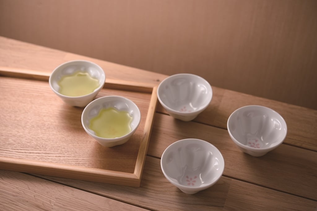 お茶を淹れた時にお茶の濃い黄褐色の色が花びらのように見える煎茶湯呑。湯呑の形状が上から見て頂くと花びらの形になっていてお茶を淹れると花びらが咲くように見えるものです。